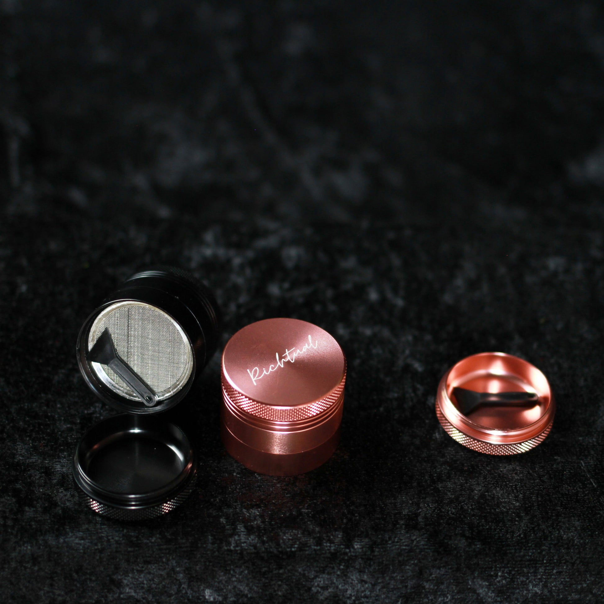 Easily roll your favorite with the Richtual mill. Our mill is a heavy-duty 4-piece made of premium aluminum providing smooth turns. It has a magnetic top and sharp teeth that grind with ease.